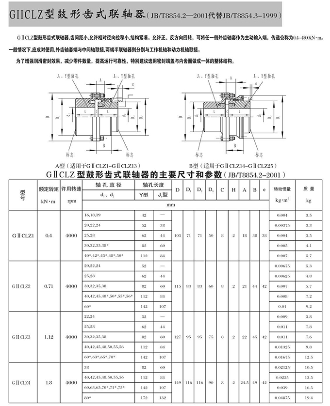 瑞安市寶德隆機械配件有限公司提供GⅡCLZ型鼓形齒式聯(lián)軸器具有拆裝方便,快速安裝等特點,廣泛用于連接/固定輪轂孔和零件的軸,例如齒輪,錐齒輪,鏈輪,葉輪,凸輪,皮帶輪和飛輪等軸的聯(lián)結(jié)固定,咨詢電話:18906872378