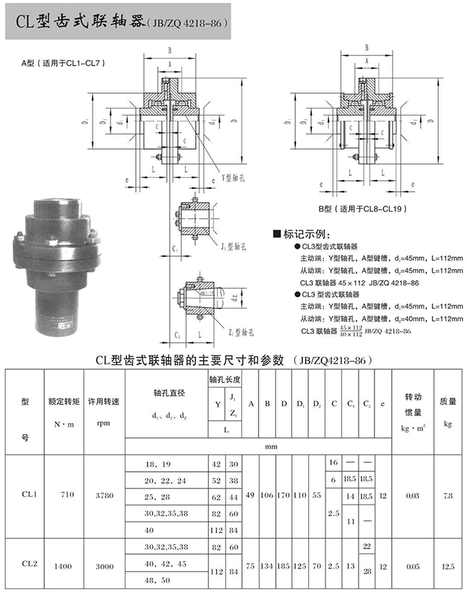 瑞安市寶德隆機械配件有限公司提供CL型齒式聯(lián)軸器具有拆裝方便,快速安裝等特點,廣泛用于連接/固定輪轂孔和零件的軸,例如齒輪,錐齒輪,鏈輪,葉輪,凸輪,皮帶輪和飛輪等軸的聯(lián)結(jié)固定,咨詢電話:18906872378